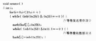 初始化后,就可以进行数据的收发了,接受数据之前必须保证接收数据就绪,这可以通过0x2fd的D0来判断,发送数据之前必须保证发送寄存器为空,这可以通过0x2fd的D5来判断,代码如下: